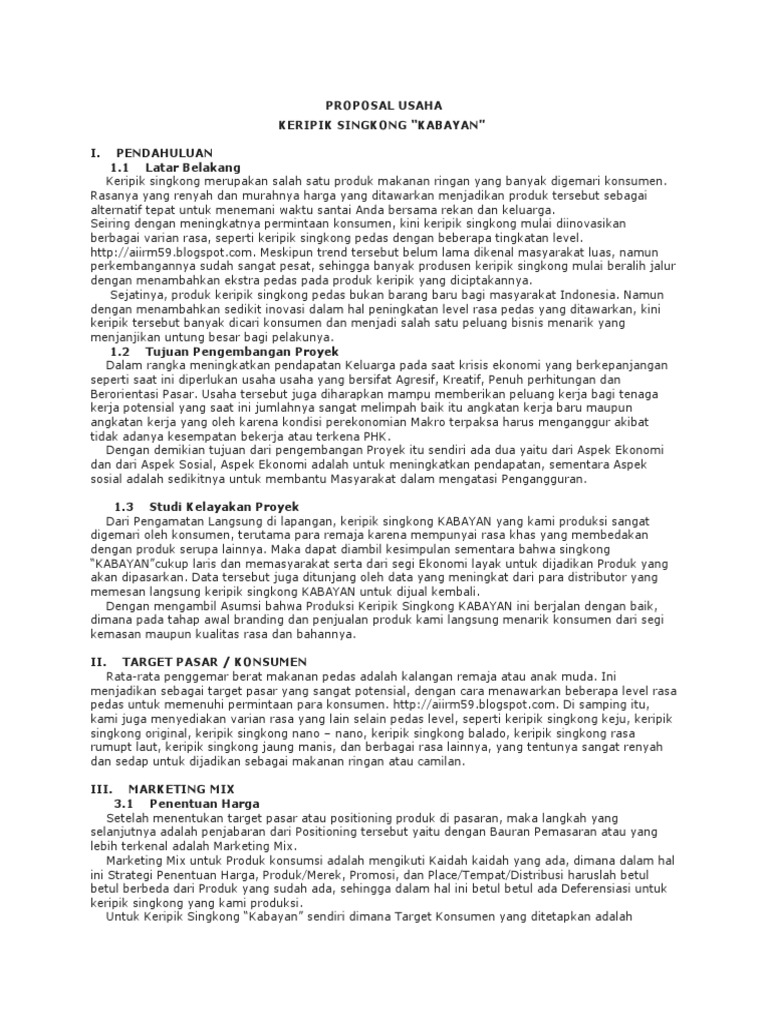 CONTOH PROPOSAL USAHA ~ ENTER NET PONOROGO from 1.bp.blogspot.com Singkong dapat dimasak dengan berbagai cara ,dapat digunakan pada berbagai macam masakan. Berbagai jenis camilan singkong yang dikemas dengan menarik seperti cake, keripik. Hal ini cukup krusial untuk dapat dilihat. Latar belakang keripik singkong merupakan salah satu produk makanan ringan yang banyak digemari konsumen. Keripik singkong sebagai salah satu makanan ringan yang disukai banyak orang merupakan makanan yang biasa dikonsumsi oleh masyarakat indonesia, hal ini menjadikan penulis tertarik untuk mempelajari bagaimana cara. Proposal penelitian adalah salah satu jenis karya ilmiah yang bertujuan untuk mengusulkan proyek penelitian, baik dalam bidang sains maupun untuk kepentingan. Kerja cerdas | salah satu jenis makanan ringan yang cukup digemari ialah keripik singkong. Contoh proposal keripik singkong docx.